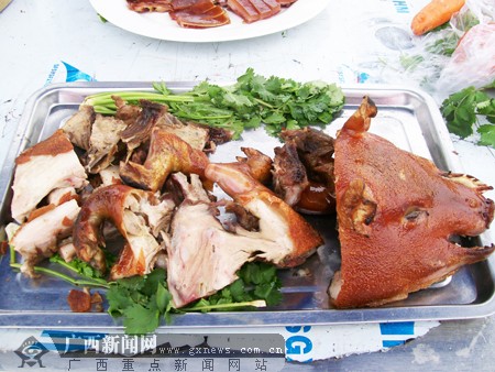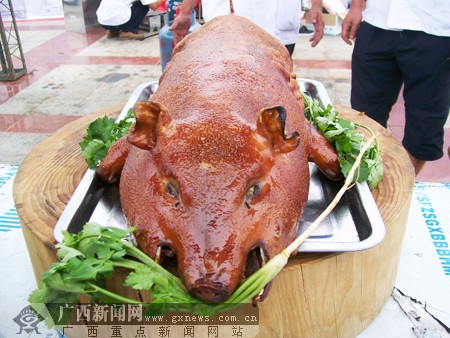 美味环江香猪。汤乐 摄 环江香猪作为环江毛南族自治县的特产,宴席上的珍馐,以其独特的鲜香风味而饮誉大江南北,名扬五湖四海。由南宁市明宝食品有限公司出品的环江香猪更是结合广西人的口味,针对广西市场所推出的重量级产品。环江香猪现今已经渐渐成为宴席上的珍馐,脍炙人口的佳肴,令外地客商不远千里趋之若鹜,环江香猪一般6公斤左右就可以食用。烫去毛后,用糯米稻草烧燎至皮呈金黄色。其肉或烧烤或清煮均可。烧制的清脆可口,香气四溢;白切的鲜嫩可口,清香飘逸。两者均无腥味,多吃不腻。但佐料不可缺,白切香猪食用时必须制作一碗配有醋精、马蹄香、生姜、辣椒、香蓼、葱白、蒜泥、豆腐乳、饼干粉末、香油等佐料的盐蘸,使其味更美。年节宴会,助你食欲大进,酒兴陡增,若不自我克制,将是“家家扶得醉人归”。 公司地址:江南区沙井镇南乡 联系电话:13005923364 |