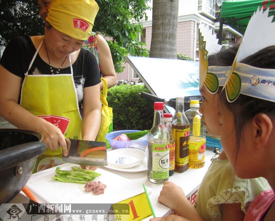厨艺大赛引得小朋友围观。 广西新闻网实习生 黄丽媛摄