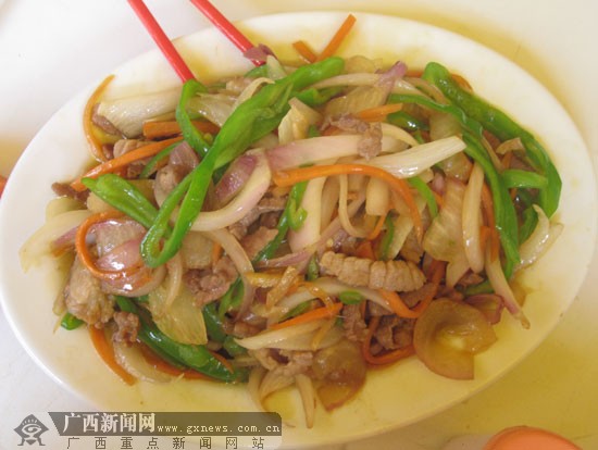 引人垂涎的青椒肉丝。 广西新闻网实习生 黄丽媛摄 “鲁花·厨艺大赛”是广西日报传媒集团当代生活报“社区服务大篷车”旗下的子活动。厨艺大赛跟随大篷车走进南宁各社区,邀请社区居民参赛。如果您喜欢做菜,想秀秀厨艺,均可报名参赛,可获得丰富奖金奖品。“鲁花·厨艺大赛”通过厨艺PK,展现家庭各成员间的亲情和社区浓浓的祥和气氛。融情于厨艺和美食之中,传承中华美食的同时传递了亲情和友情,展现和谐社会。 |