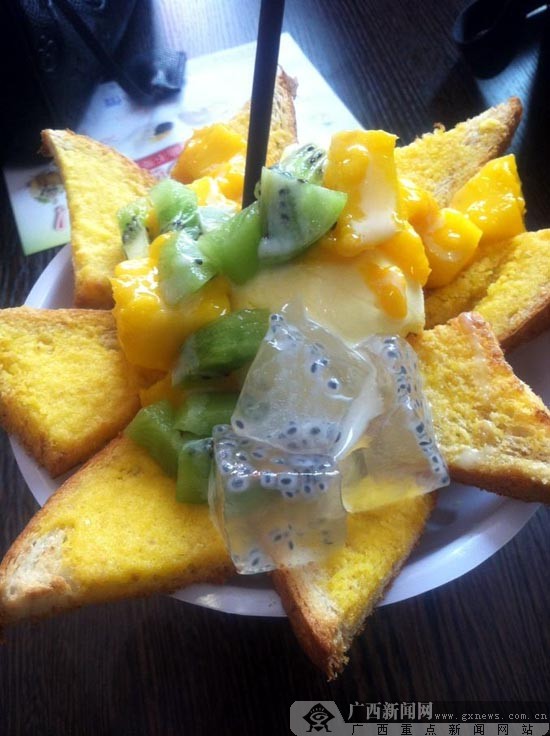 广西新闻网南宁3月11日讯(记者 秦丽君)3月10日台湾时尚甜点品牌——缤纷水果华芙广西旗舰店入驻南宁,专卖店在南宁百货新世界店一楼正式开业,新闻网美食频道吃货行动帮大家尝尝鲜。 美食记者品尝了店里的招牌甜点,给大家特别推荐:缤纷水果华芙和巧克力香蕉蓝莓土司。缤纷水果华芙,端上来后发现确实有狂想曲的那种狂野凌乱,与名字很配,如果没有配上这个名字,那甜品就体现不出这种味道了。浓情蓝莓土司可以算是个简单的营养早餐吧,色彩缤纷的,配上当季芒果、还有猕猴桃和蓝莓酱,非常漂亮诱人哈,估计孩子们更喜欢些,一道营养早餐就有了。求新、求变的产品创意和手工、养生的品质概念是仙Q品牌的两大亮点。强调产品冷热均衡的仙Q甜品,能够让大家在舌尖上品尝到一年四季不同的水果特色,满足消费者不同口感需求。此外,新鲜的水果原料和特色的调制手艺也能够带给消费者时尚与传统的双重味觉享受。