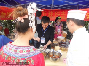 广西新闻网柳州10月23日讯(记者 李伟国)“这螺蛳粉好辣,比在南宁吃的感觉味道更好!”“这现榨、现做的生粉口感蛮好,不知道在柳州开分店了没有?”10月23日上午,柳州市柳州菜饮食文化博物馆门前广场热闹非常,广西桂菜美食八桂行大型宣传推广活动在这里举行隆重的开幕式,精美的特色美食让吃货们吃得过瘾。