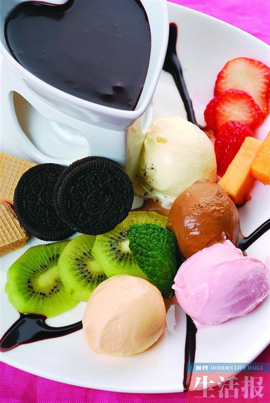 巧克力火锅 富含浪漫元素的火锅 食探指路: 五一路 时下的南宁火锅市场已是百花争艳、市场细分明显,素食火锅的推出丰富了素食群体的消费需求,巧克力火锅的出现则让浪漫美食锦上添花。 相比遍布街巷的川式火锅、粤式火锅,巧克力火锅则不多见,记者探访过程中,在蜜斯何咖啡品尝到了充满浪漫味道的独特火锅。 巧克力火锅锅底由纯正的巧克力制成,甜度比较高,对于喜欢吃甜食和讲究温馨浪漫的人来说,是一种不容错过的美味。 或是受原材料的限制,吃巧克力火锅不能太过急切,需耐心地等待!用温火慢慢搅拌并煮化巧克力……伴随着锅中升起淡淡水汽,传递着一种说不清、道不明的浪漫,然后配上各种水果和糕点食用,一把长柄叉子,叉上爽口的苹果或细腻的香蕉等,再蘸着浓香的巧克力,食物所到之处满是甜意。